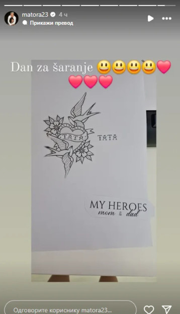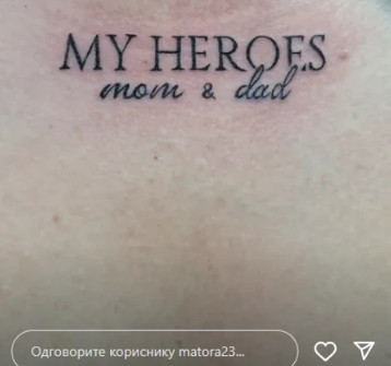 Nakon fotografija skica, usledile su fotografije i pravih tetovaža koje je Matora posvetila svojim roditeljima.
