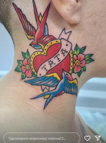 Na fotografiji se moglo uočiti da se dvoumi između nekoliko tetovaža, a neke od njih su “Moji heroji su mama i tata“, kao i tetovaža “tata“ koja je ukrašena sa cvećem i srcima, ali i obično napisano samo “tata“ i to velikim slovima.