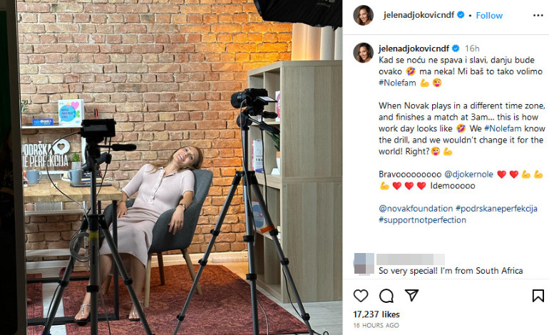 Jelena nije bila u prilici da otputuje u Ameriku i uživo isprati finalni meč Novaka u Sinsinatiju, pa je poput velikog broja navijača ostala budna čitavu noć kako bi bodrila svog dragog u epskom finalu protiv Karlosa Alkaraza.