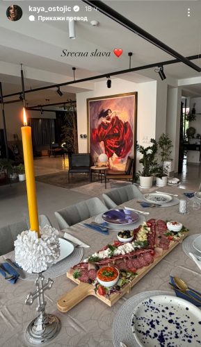 Jedan detalj u enterijeru posebno privlači pažnju. Plavi umetnički tanjir, koji je Kaja dobila od svoje kume, dodaje toplinu i lični pečat prostoru, pokazujući kako umetnost i uspomene prožimaju svaki kutak njenog doma.