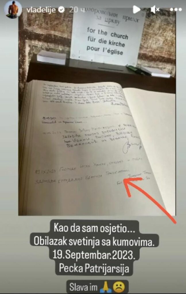 On je putem Instagrama podelio poruku koju je ostavio u knjizi utisaka: