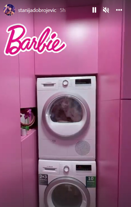 Starleta u stanu ima i prostoriju namenjenu za pranje i sušenje veša koja je ofarbana u pink boju.