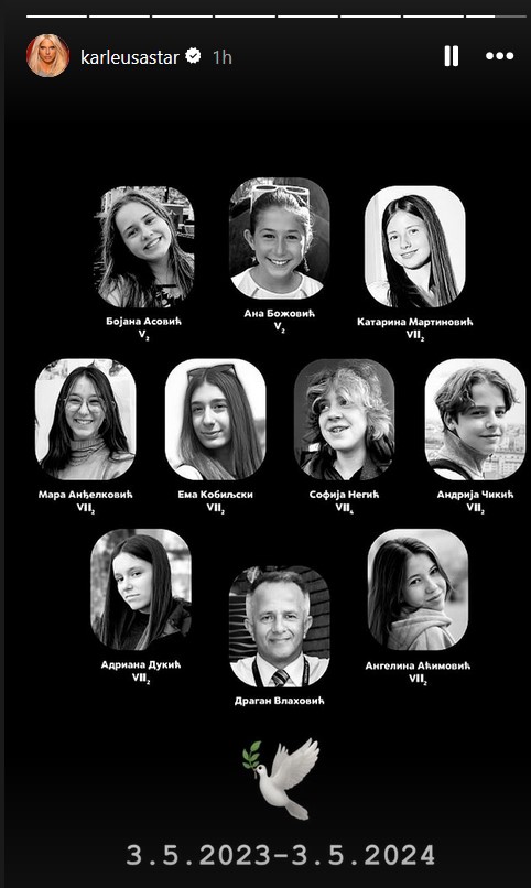 Reading: KARLEUŠA ODALA POČAST KOSTINIM ŽRTVAMA! Pevačica potresnom objavom poslala SNAŽNU poruku!