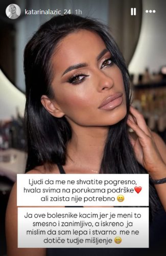 Katarina Lazić je sada na svom Instagram profilu rešila da odgovori hejterima, pa je javno objavila poruke koje je dobila.