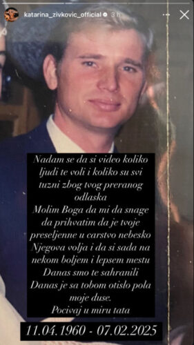 Katarina je bila izuzetno vezana za njenog tatu koji je preminuo posle duge borbe sa opakom bolešću, a na storiju je poručila da oseća da je sa njim otišao i deo nje.