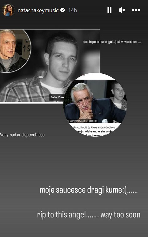 – Veoma tužno i bez reči sam – dodala je uz fotografiju preminulog Aleksandra sa ocem Mirkom.
