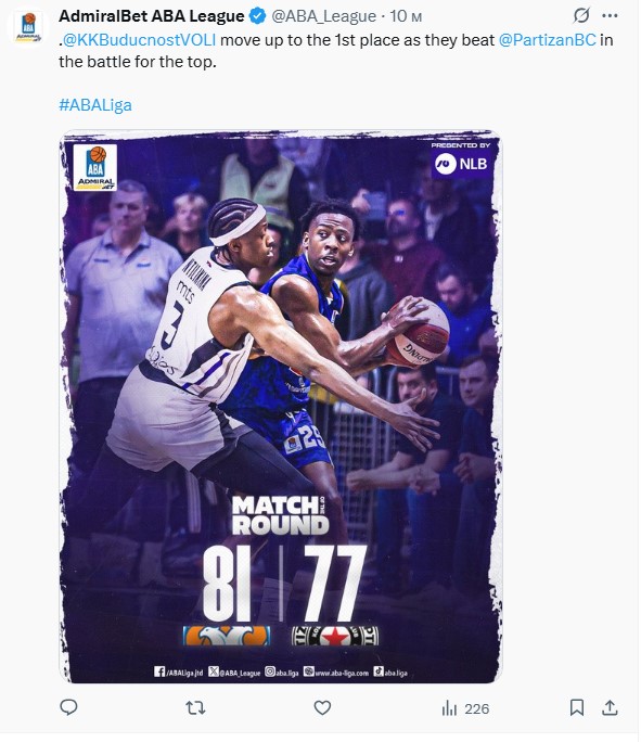 Budućnost sada ima skor od 24 pobede i 3 poraza, uz bolji skor od crno-belih, dok je tim iz Humske drugi sa bilansom 23-4.