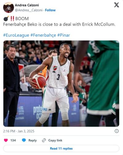 Ono što je iznenađenje jeste informacija koja se pojavila, da je trener Šarunas Jasikevičijus zainteresovan za angažovanje legende Evrokupa i veterana od 36 godina. Reč je o igraču Karšijake, Eriku Mekalumu, koji je nekoliko puta nastupao u Evroligi.