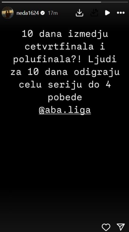 Serija počinje tek 23. maja i zbog toliko dugog čekanja Nemanja Nedović reagovao je na Instagramu u ponoć, obračunavši se sa čelnicima regionalnog takmičenja, zbog ovakvog neobičnog kalendara.