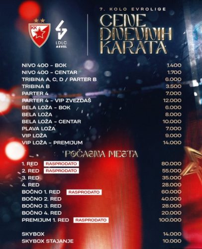 – Naš tim će biti domaćin u prvoj utakmici ovog duplog kola, meč 7. runde sa Asvelom na programu je već u utorak od 19 sati u „Beogradskoj areni“. Tim povodom KK Crvena zvezda  pušta u subotu od 12 sati u prodaju pojedinačne karte za duel sa francuskim timom.