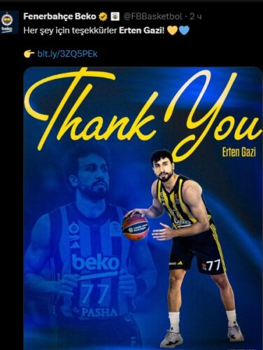 Turski košarkaš Erten Gazi više nije član Fenerbahčea, saopštio je danas klub iz Istanbula.