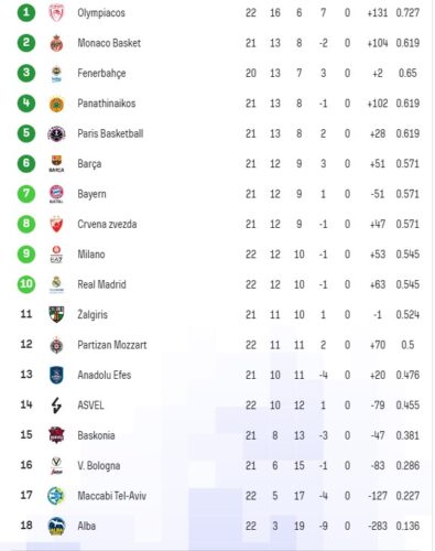 Asvel je došao do 10. pobede, uz 12 poraza, dok je Alba na dnu Evrolige sa skromnim skorom 3-19.