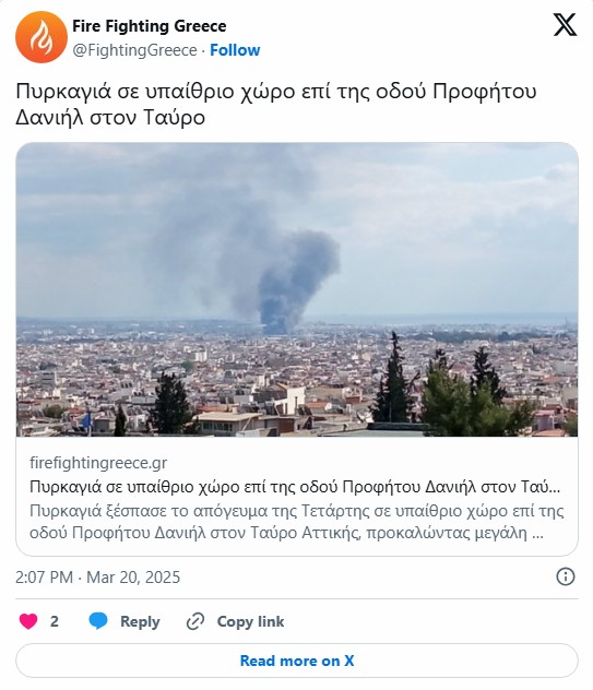 – Zaštita građana, u toku je požar u Atiki. Dim se kreće prema Vašoj lokaciji. Ostanite unutra zatvorite vrata i prozore – stoji u poruci grčkih vlasti, koju su uputili građanima Pireja.