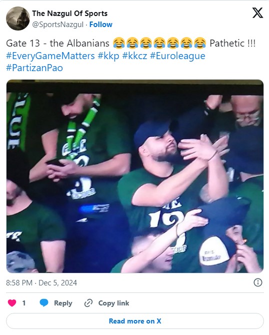 Navijači grčkog velikana, popularni Gate 13 najvatrenije pristalice „zelenih iz Atine“, bili su stacionirani na tribini iza koša na nivou 400 u Areni.