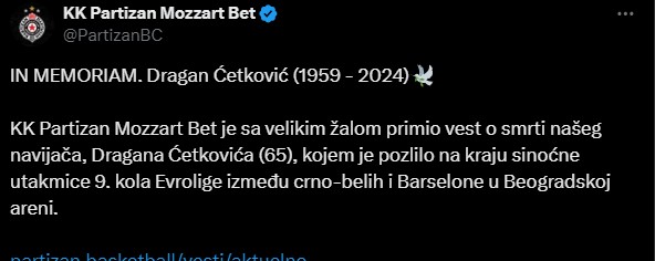 Prokomentarisao je i smrtni slučaj na prošloj utakmici, kada je preminuo navijač Partizana.