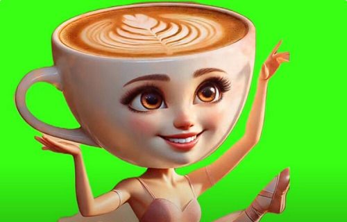 Balerina sa šoljom kapućina umesto glave i licem na šolji