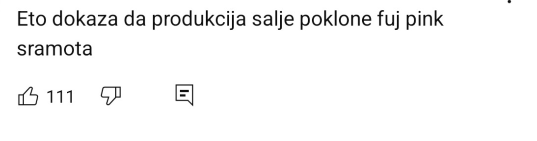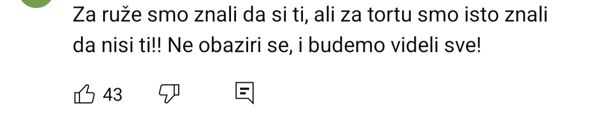 „Koliko bedno„, „Produkcijo neka vas je sramota„, „Eto dokaza da produkcija šalje poklone fuj, sramota„, „Produkcija igra igru i pravi zvrčke ,to je očigledno️„, „Za ruže smo znali da si ti, ali za tortu smo isto znali da nisi ti!! Ne obaziri se, i budemo videli sve!„… samo su neki od komentara.