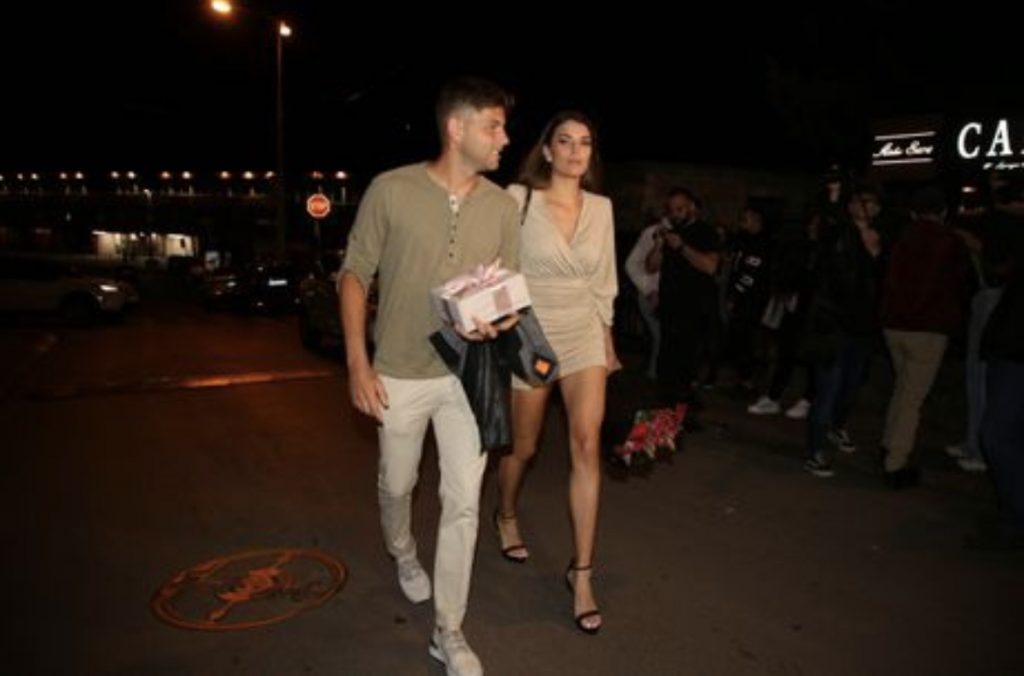 Dok je Krajinović u ruci nosio poklon, njegova devojka je nosila ogroman buket ruža za Ražnatovićevu.