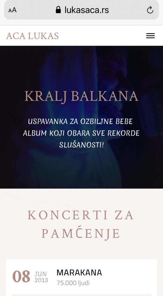 Nakon albuma „Uspavanka za ozbiljne bebe“, Aca je otvorio i svoj sajt na kojem je objavio snimke sa svojih velikih koncerata ali i sa mnoštvom drugog sadržaja.