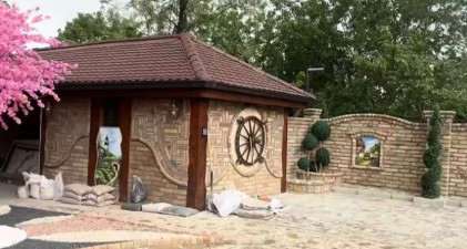 Kuća ima nekoliko nivoa, a pored glavne zgrade poseduje i više pomoćnih objekata, u kojima se nalaze teretana, spa-centar, garaže… Vila sadrži i veliki bazen, košarkaški teren, kao i dečije igralište.