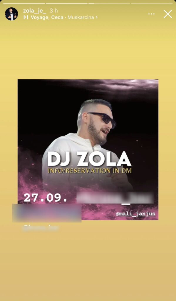 Naime, Čolić je na Instagramu izreklamirao svoj nastup. Poznato je da se povremeno bavi muzikom, a kao DJ nastupa u jednom klubu u Austriji. On je na storiju tagovao i Marka Janjuševića Janjuša.