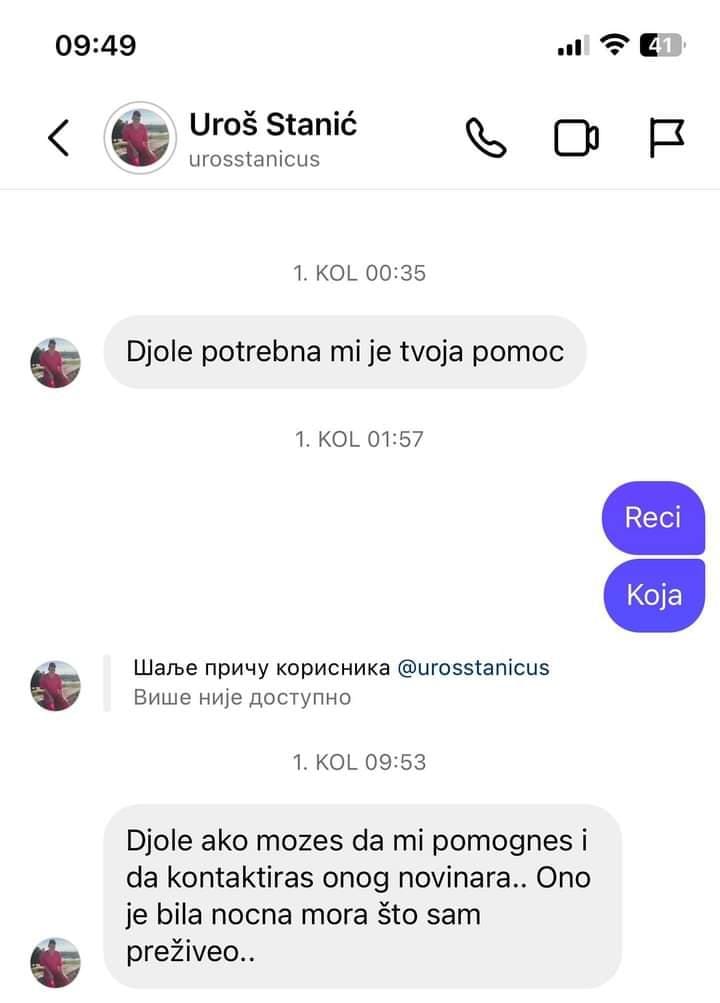 „Želim da kažem da je sto posto od Uroša Stanića priča lažna i da je onaj snimak podeljen gde je dobio batine od nekih likova namešten da bi došao do bilo kog novinara, jer je molio da delim video. Sam mi je tražio pomoć da mu pomognem da dođe do bilo kakvog medija i na kraju čujem da me je mali klošar, kojeg nema ker za šta da ujede, pljuvao na sve strane, još ja budala hteo da mu pružim podršku na samom njegovom ulasku u Elitu“ – zaključio je Đole Kralj.