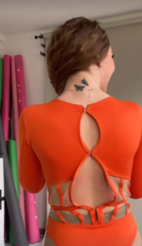 Jutjuberka je postavila video na kome u provokativnom izdanju pozira u narandžastom bodiju, koji je istakao njen uzak struk, a istovremeno naglasio obline.