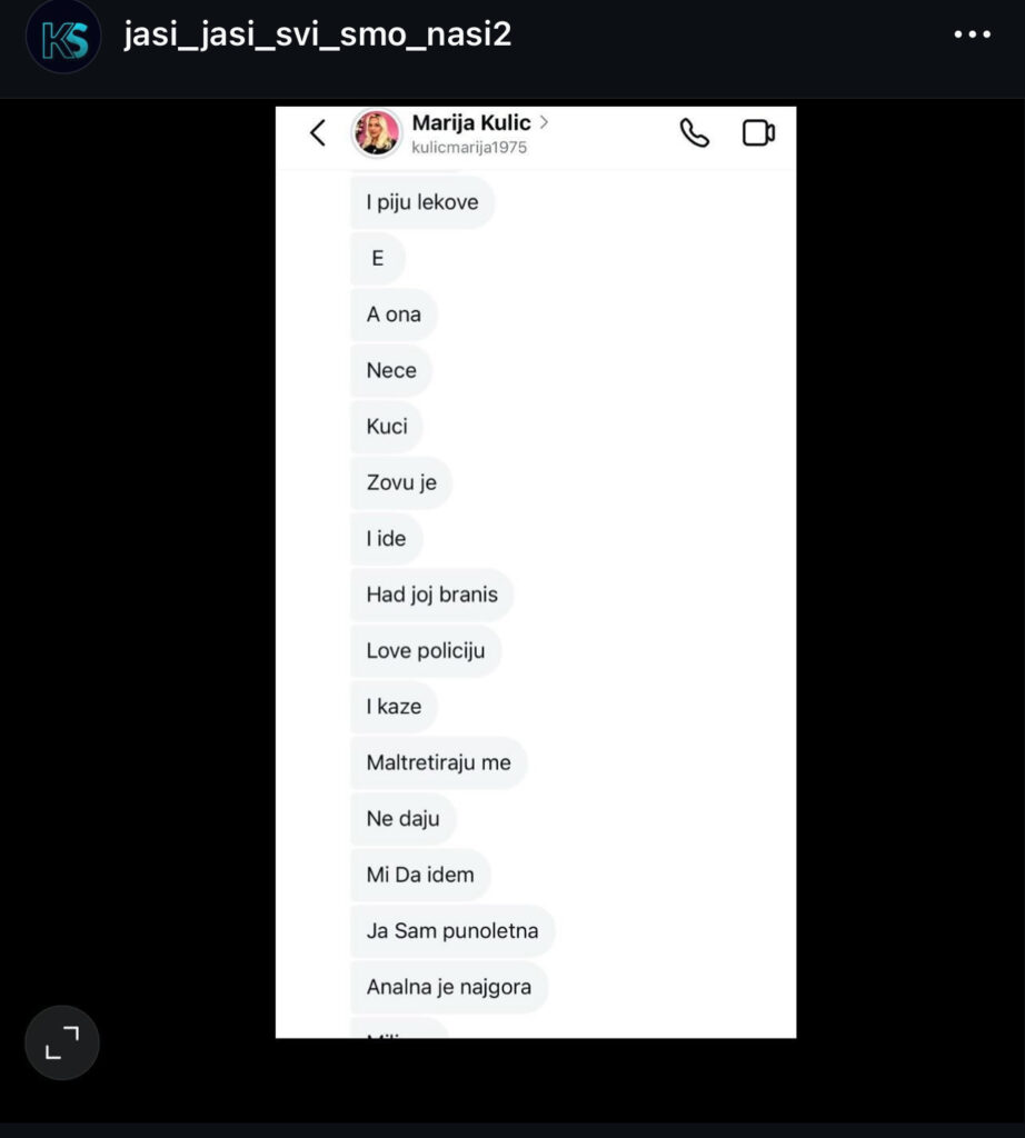 ”Ona neće kući. Zovu i je i ona ide. Ako joj braniš zove policiju i kaže maltretiraju me. Ja sam punoletna. Ne daju mi da idem”., pisalo je u navodnoj prepisci Marije Kulić.
