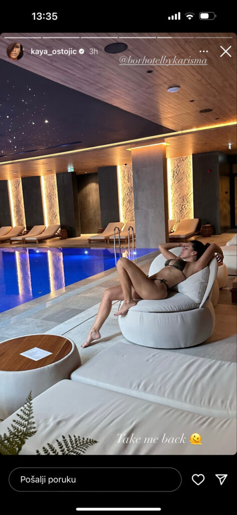 Te se tako i fotografisala u jednom spa centru u kupaćem kostimu tamne boje i fotografiju okačila na svoj lični Instagram story.
