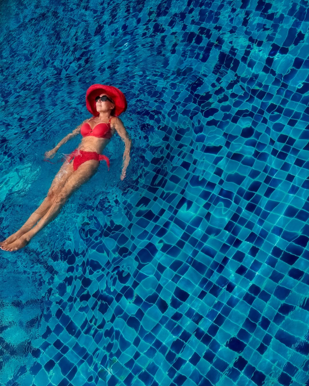 Pevačica je pokazala da oporavak ide super. U bazenu se baškarila u crvenom bikiniju, sa šeširom na glavi, dok se Boba potrudio da joj boravak u vodi bude što udobniji.