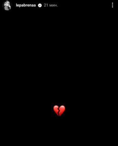 Lepa Brena oglasila se na svom Instagram profilu, postavljajući crnu pozadinu sa srcem koje se deli na dva deli.