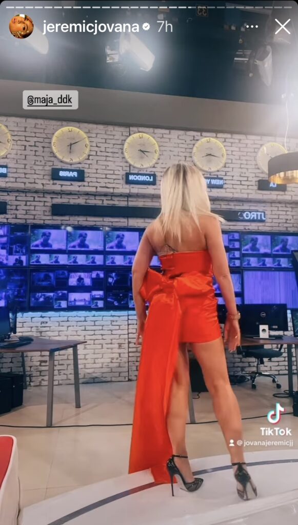 Televizijska voditeljka, Jovana Jeremić, koja je nedavno odlučila da svoje zvanje proširi pevanjem, tokom Jutarnjeg programa ovog vikenda, Jovana je nosila haljinu sa dugim šlepom, što se samo po sebi pokazalo kao veliki izazovno.