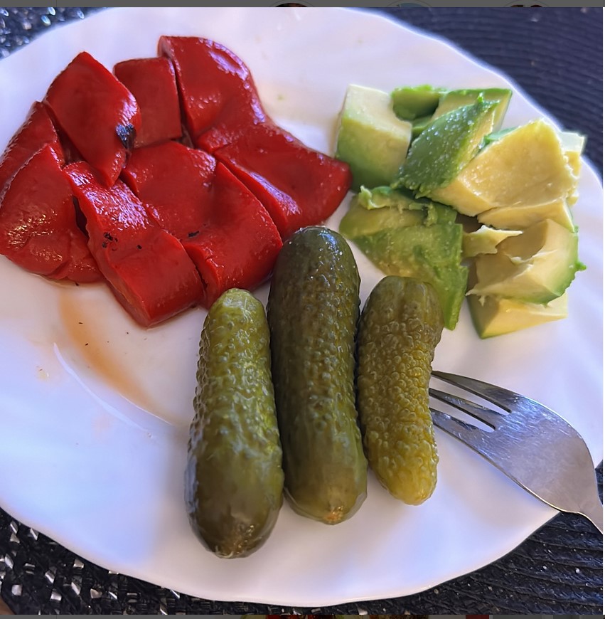– Kad postiš i mrzi te da bilo sta praviš. Kako vam se čini – napisala je Ljuba ispod slike tanjira na kome su stajali kiseli krastavčići, avokado i pečena paprika.