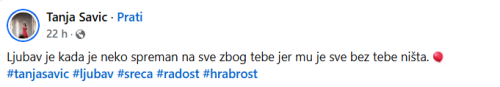 Pevačica Tanja Savić oglasila se na društvnim mrežama i emotivnom porukom se obratila partneru Muhamedu Mukiju Bešiću.