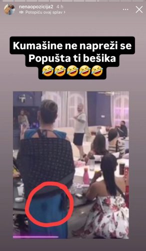 Fanovi su na društvenim mrežama zbijali šale na račun Milene. A jedan od njih je napisao i sledeći komentar: „Kumašine ne napreži se, popušta ti bešika„.