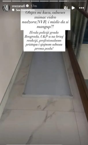 – Obiješ mi kuću odneseš odneseš snimač vide nadzora i misliš da si mangup. Hvala policiji grada Beograda na brzoj reakciji i sjajnom odnosu prema poslu – napisala je na Instagramu.