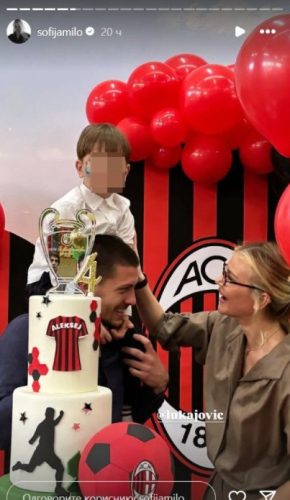 Ništa manju i lepšu tortu spremili su i za Alekseja kojem je rođendan u septembru, ali su ga proslavili u igraonici tek pre dva dana. Aleksejeva torta bila je u boji, kao i amblemima kluba „Milan“ za koji igra njegov otac, pa se da zaključiti da je ljubitelj fudbala.