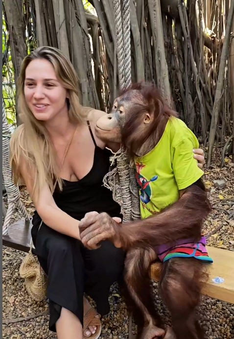 Posle ovakve scene, Lukina devojka jedva je sela na klupu da se slika sa majmunom jer nije ni sama znala šta da očekuje. Bila je po malo plašljiva, ali je na kraju dobila zagrljaj i poljubac.