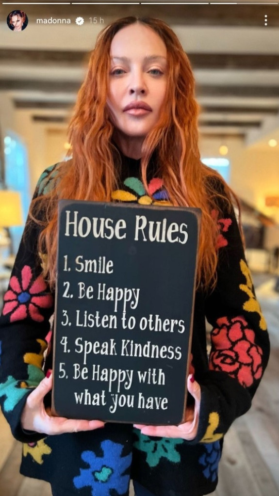 Madona je na svom instagram profilu objavila post i otkrila pet jednostavnih pravila, koja moraju da se poštuju u njihovom porodičnom domu.
