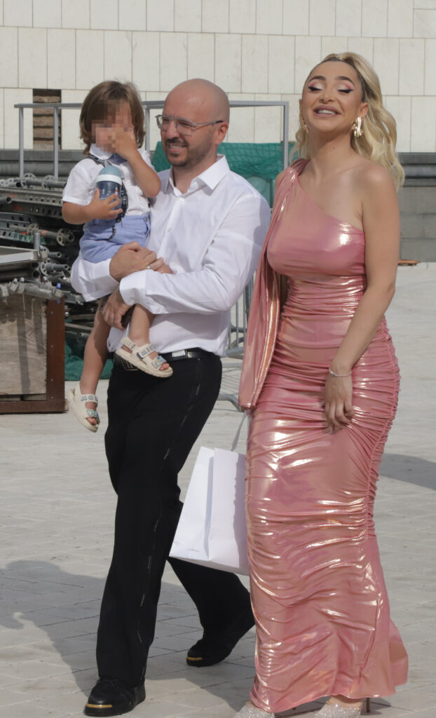 Njen suprug Alen nosio je njihovog sina Lava, koji je za ovu svečanu priliku bio obučen u svečani stajling. Mali Lav je izgledao preslatko u svojoj elegantnoj odeći, što je dodatno doprinosilo svečanoj atmosferi ovog događaja.