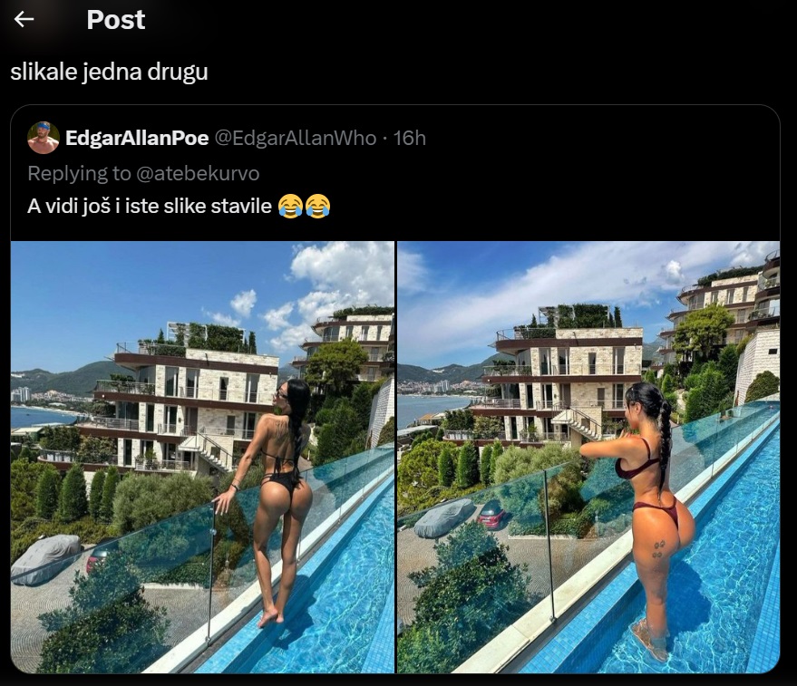Detektivsko oko jedne Tviterašice je dobro uočilo da je isti hotel, kao i bazen u pitanju. Kada se uporede tagovi kod Maje i Aleksandre, zaista jeste isti budvanski hotel.