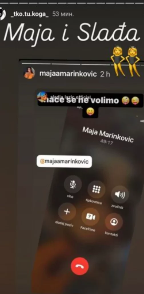 Slađa je objavila fotku na kojoj se vidi da je sa Majom Marinković dugo razgovarala! Ova objava je dodatno podgrejala intrige i hejtere da se atraktivna crnka sveti Aneli zbog svega što se dogodilo u rijalitiju.
