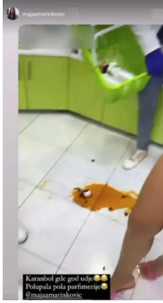 Njen prijatelj šaljivo je poručio da rijaliti zvezda napravi „karambol gde god uđe“, kao i da je „polupala pola parfimerije“.