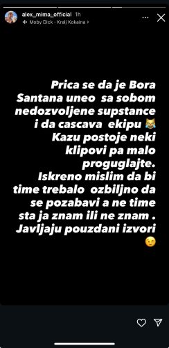 Podsetimo, Aleksandra Nikolić se nedavno oglasila na svom Instagram profili, te optužila rijaliti učesnika Boru Santranu da je uneo nedzvoljene supstance u rijaliti.