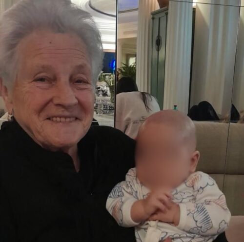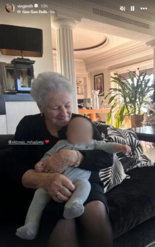 Ona ga je držala u naručju, dok se on igrao sa bebom. Inače, ovaj praunuk je sin Virdžinije, a na svet je stigao u septembru i nosi ime po svom dedi – Siniša Leone.
