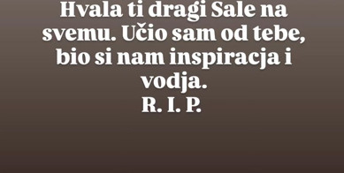 „Hvala ti dragi Sale na svemu. Učio sam od tebe, bio si nam inspiracija i vođa.“