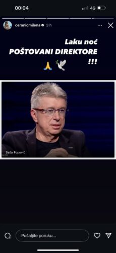 „Laku noć, poštovani direktore„, napisala je Milena Ćeranić koja nije bila u dobrim odnosima sa Sašom, ali činjenica je da joj je mnogo žao zbog njegove smrti.