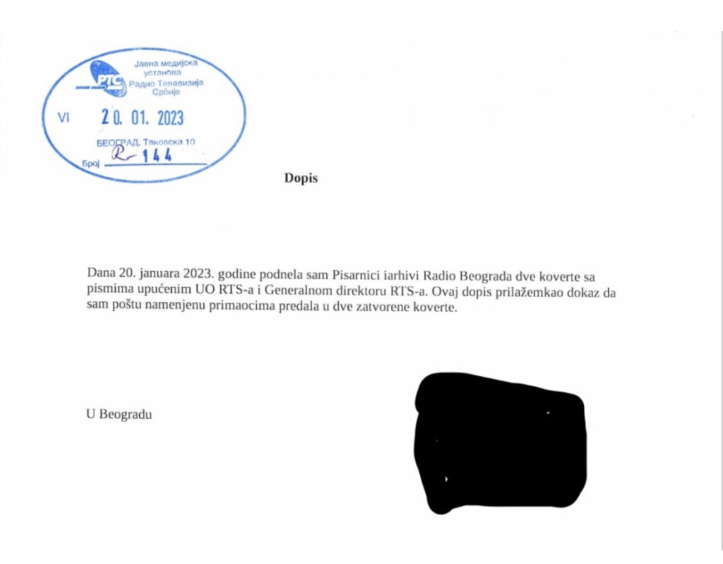 – Obraćam vam se sa molbom, kao dugogodišnji radnik RTS-a (ovo mi je 27. godina radnog staža + desetak godina spoljne saradnje) da ne dozvolite da primitivno i samovoljno ponašanje čoveka koji pre svega zloupotrebljava službeni položaj, bruka i vas i mene i ostale zaposlene u Javnom medijskom servisu građanja Srbije – piše u prijavi koju je našoj redakciji poslala jedna od zaposlenih novinarki u Radio Beogradu (ime i prezime poznato redakciji).