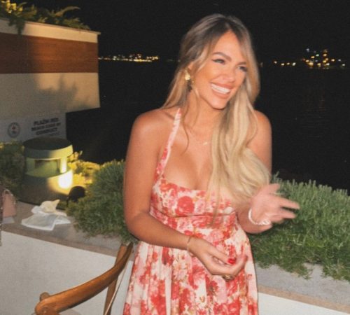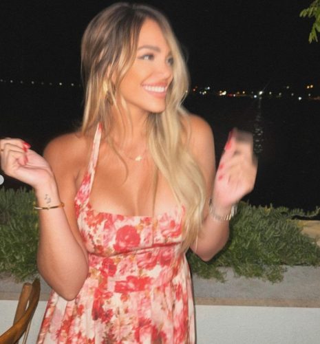 Mikićeva je ukrala sve poglede u izazovnoj letnjoj haljini na bretele. Cvetni dezen u crvenim i belim tonovima istakao je njen preplanuli ten i bujan dekolte.