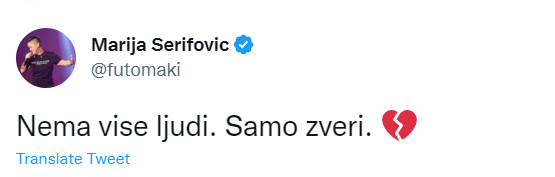 – Nema više ljudi. Samo zveri – istakla je Marija na svom Tviter profilu.